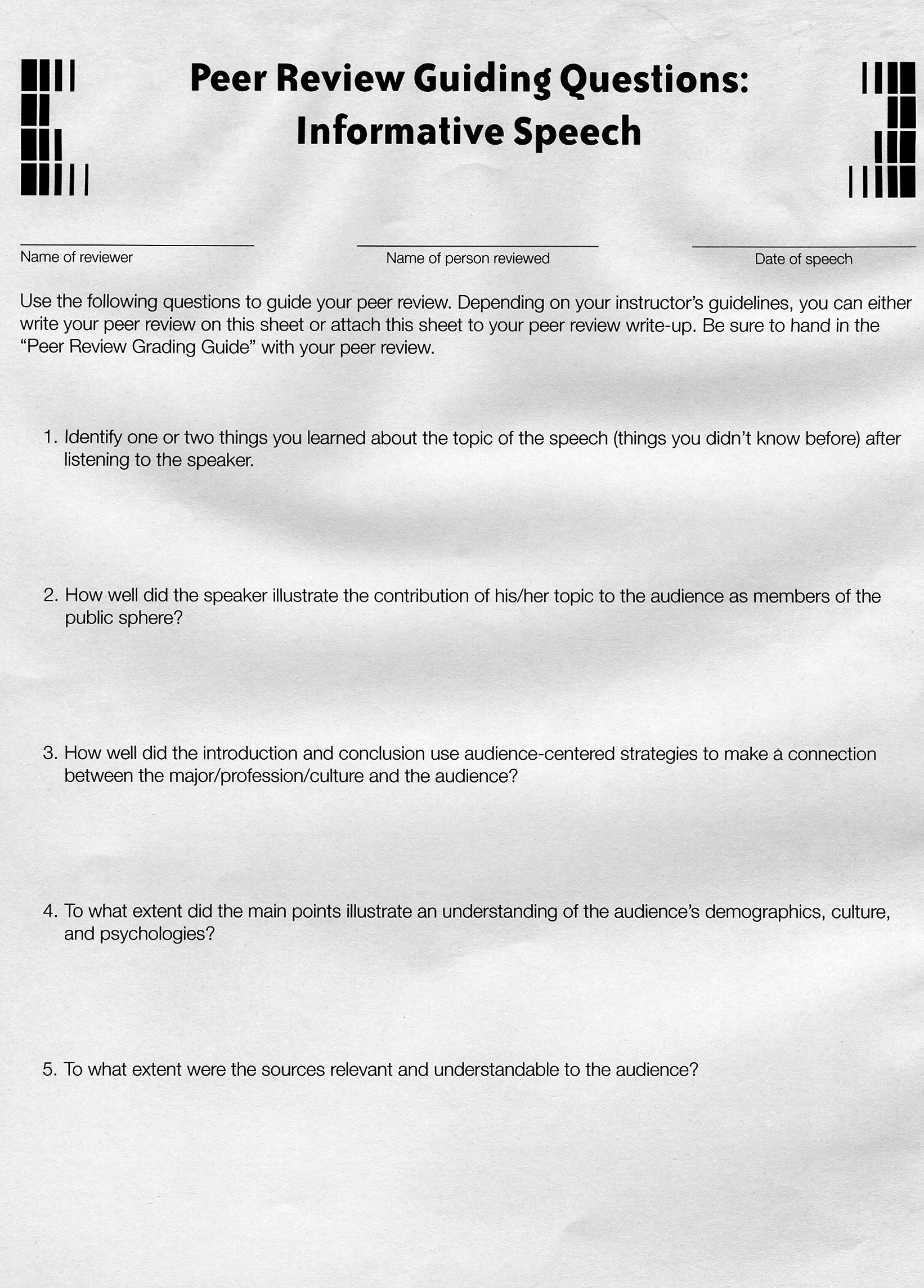 Informative Speech Peer Reviews Due Saturday, Feb 20th.